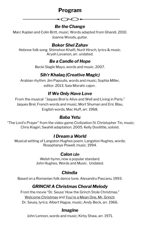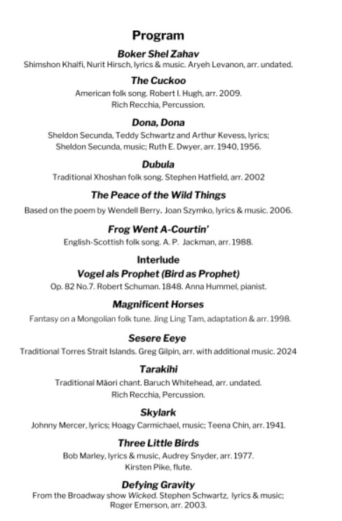 2019 Spring Concert Program Exploring Ithaca’s Heritage through Song